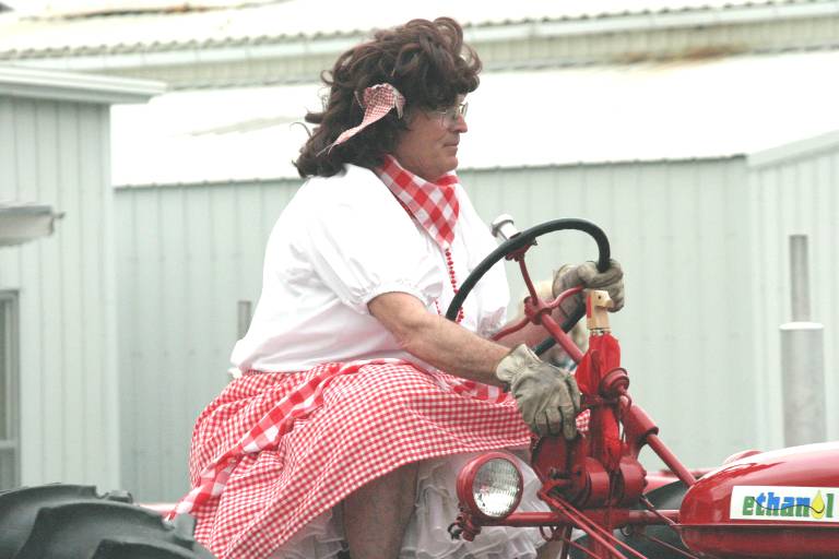 It is rare that a woman will be the driver of a tractor in these dances, mainly because while the men are out practicing these intricate moves with their tractors, the women are doing the real work of caring for the family, etc. But square dancing is always done with male/female couples, so, in most of these dances, you will find that the "women" are usually men in wigs and dresses.
